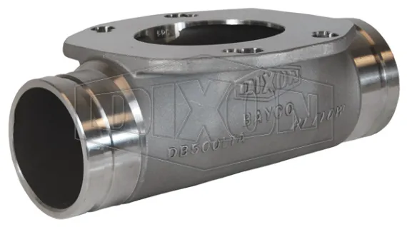 Straight tees are used at the base of dry bulk tank hoppers. With straight tees the dry bulk product is unloaded utilizing a blower generated pneumatic flow through the straight tee and air pressure on top of the hopper.